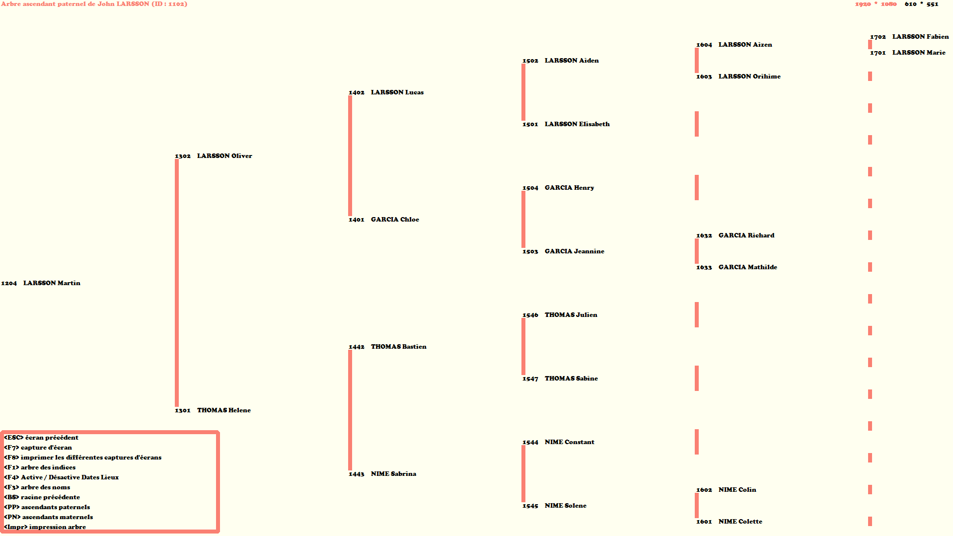 Voici l'arbre généalogique d'un individu selectionné
