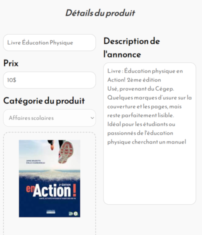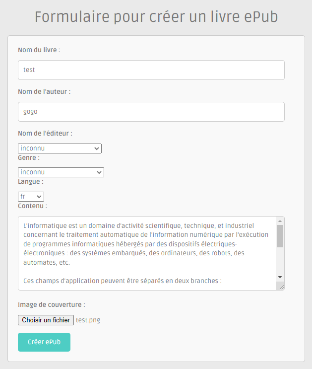 Voici la page de création d'un livre