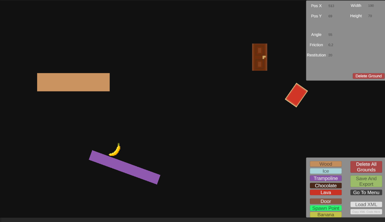 Ce jeu est un jeu de speedrun où le but et de finir le niveau le plus rapidement possible. Chaque joueur peut créer des niveaux jouables par les autres joueurs. Je travaille actuellement sur le mode multijoueur.