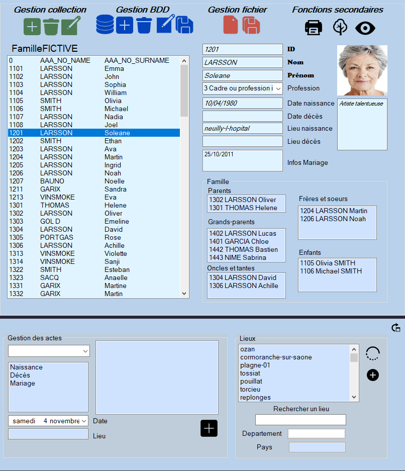 Projet qui répertorie tous les membres d'une famille et affiche son arbre généalogique